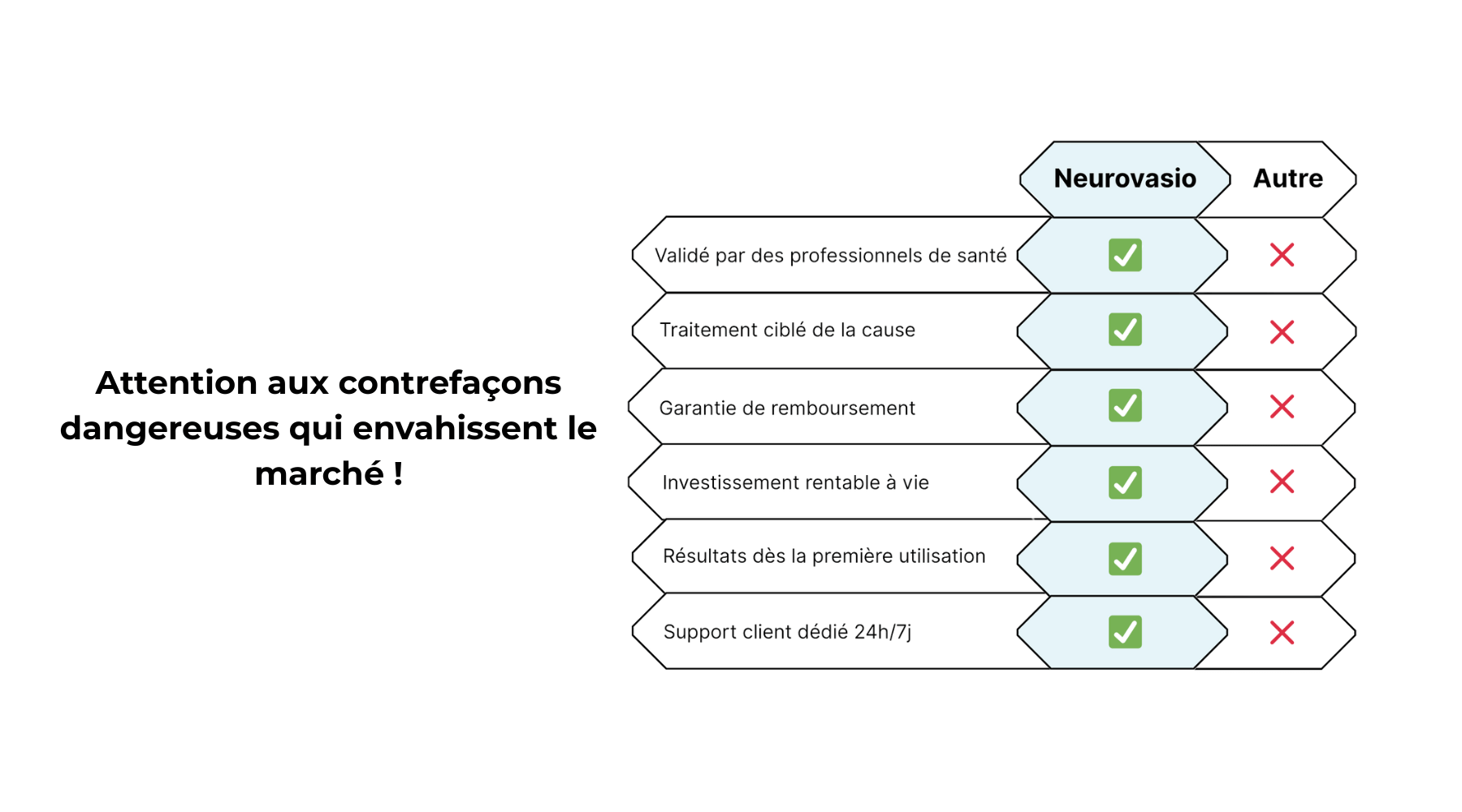 Neurovasio commercialise son masseur de pieds révolutionnaire exclusivement sur ce site officiel. Vous ne trouverez pas notre produit sur Amazon, Cdiscount, eBay ou d'autres plateformes tierces. Cette décision stratégique nous permet de vous garantir une qualité
