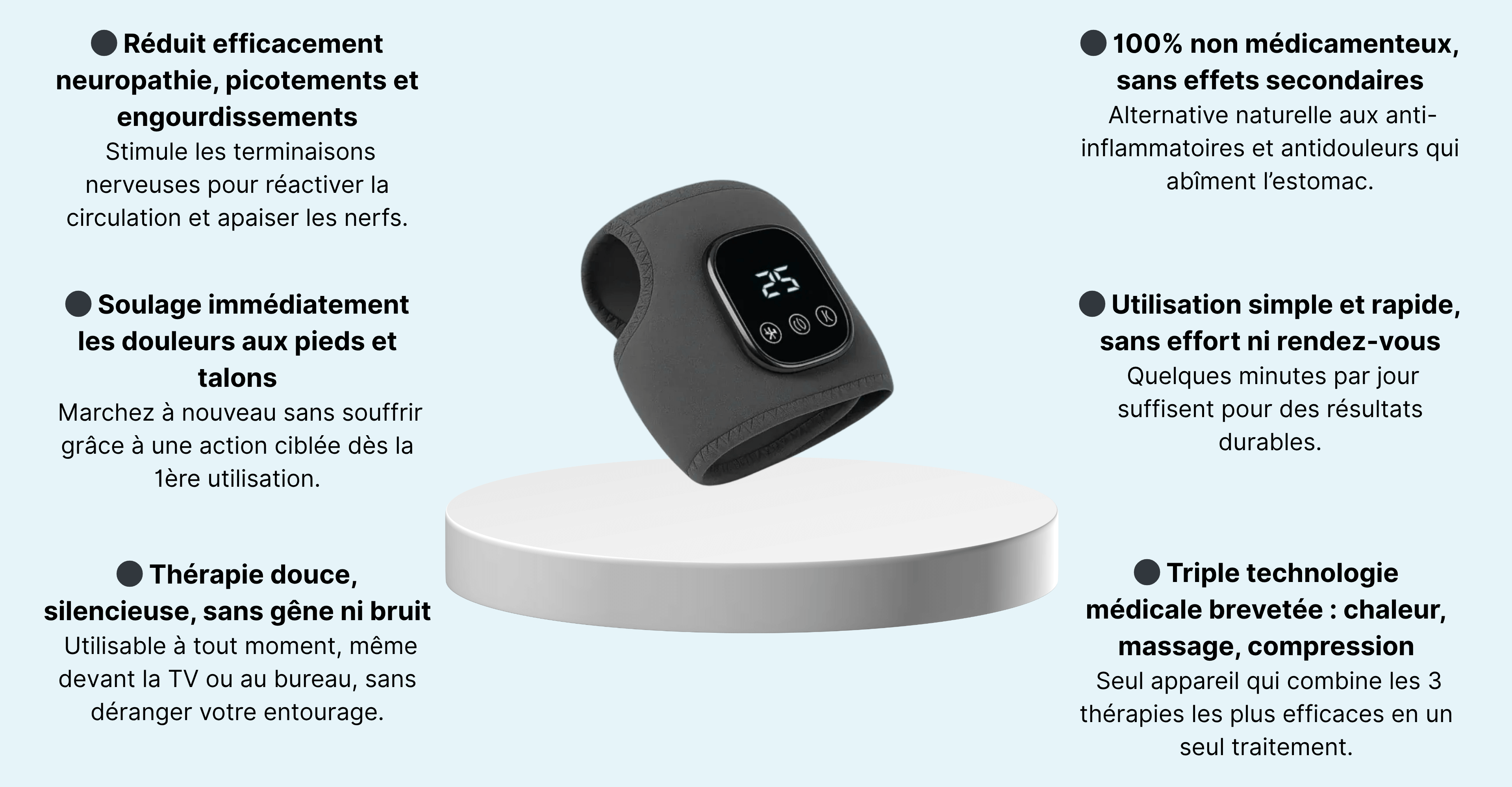 Mais une solution naturelle et efficace existe. Neurovasio combine massage, chaleur et compression pour soulager la douleur, réduire le gonflement et détendre vos pieds fatigués en seulement 10 minutes par jour.